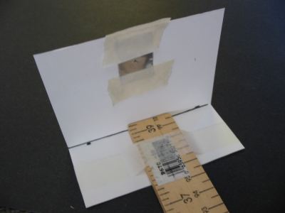 Fold a small piece of card (~ 6 cm x 15 cm) as shown.